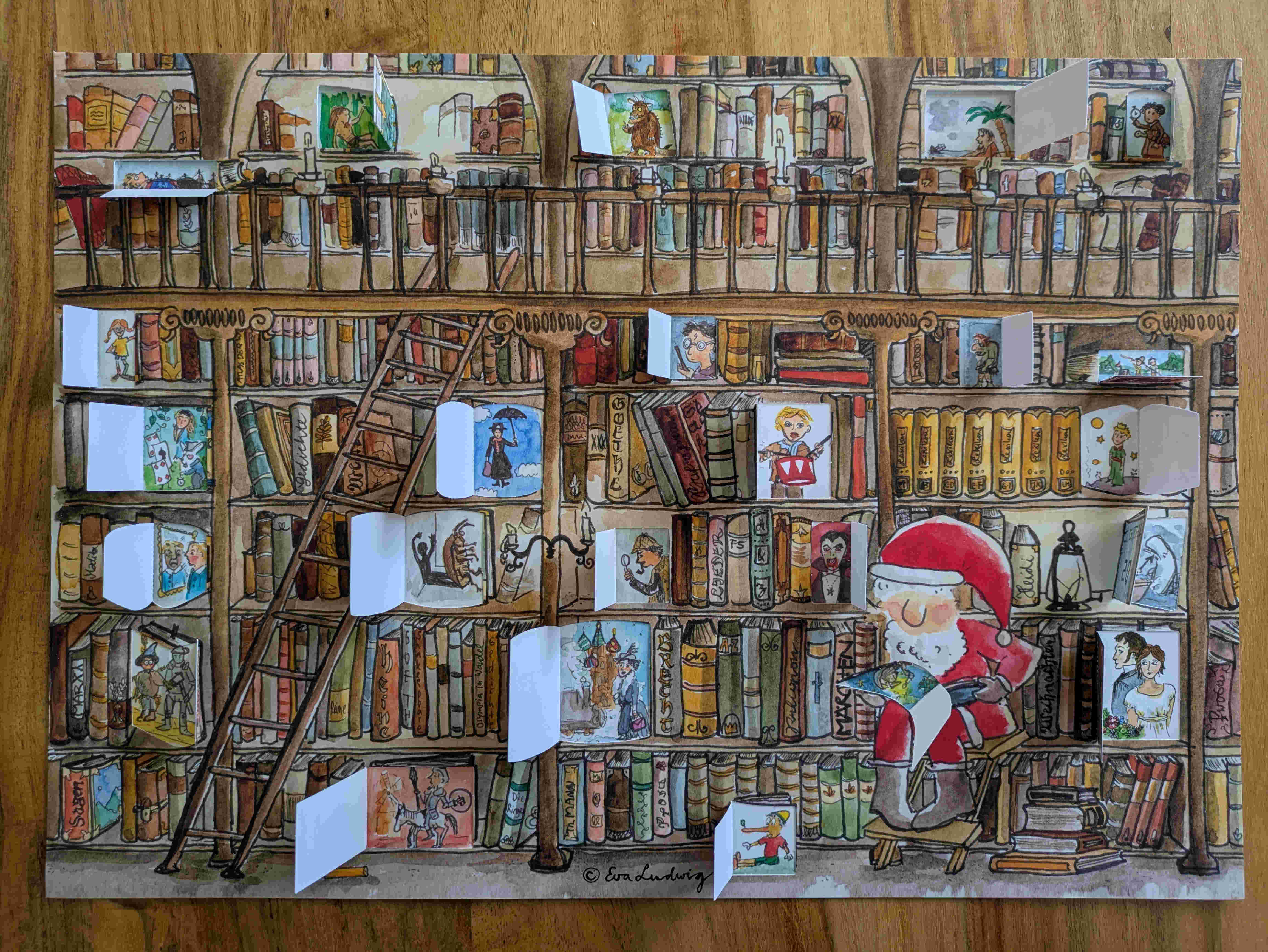 My daughter had great fun guessing the titles of the books behind each window! (solutions provided in an envelope on the back of the calendar).